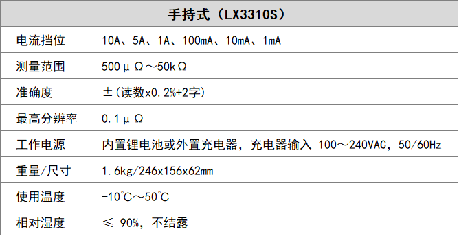 手持式直流電阻測試儀(LX3310S)