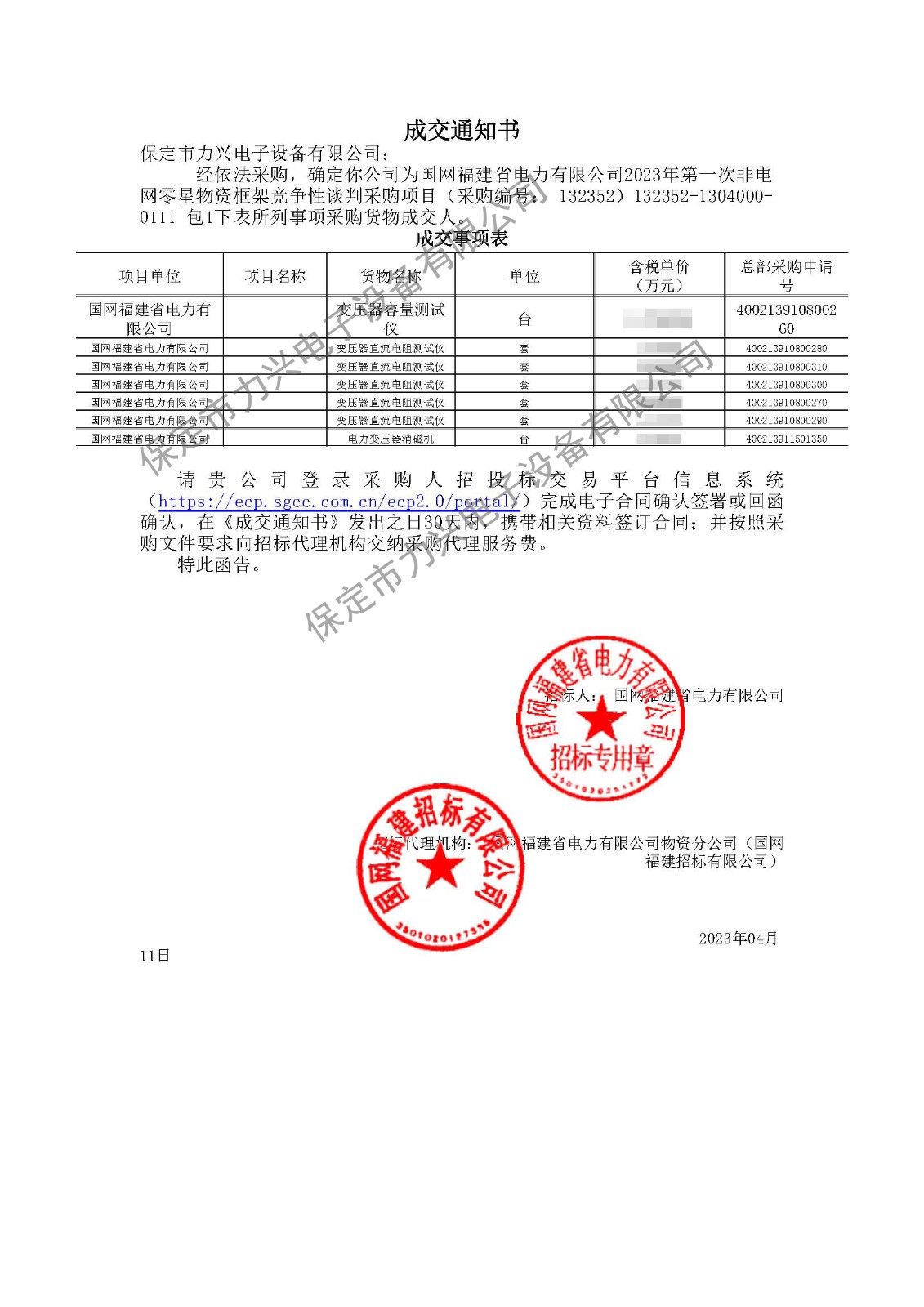 5. 2023.06.25 國網(wǎng)天津市電力公司2023年第三次物資競爭性談判項目(中標2個包)